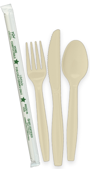 Our Cutlery is Both Home and Commercially Compostable.*§ Commercially compostable facilities may not exist in all areas. To find a commercial compost facility near you visit: https://findacomposter.com/